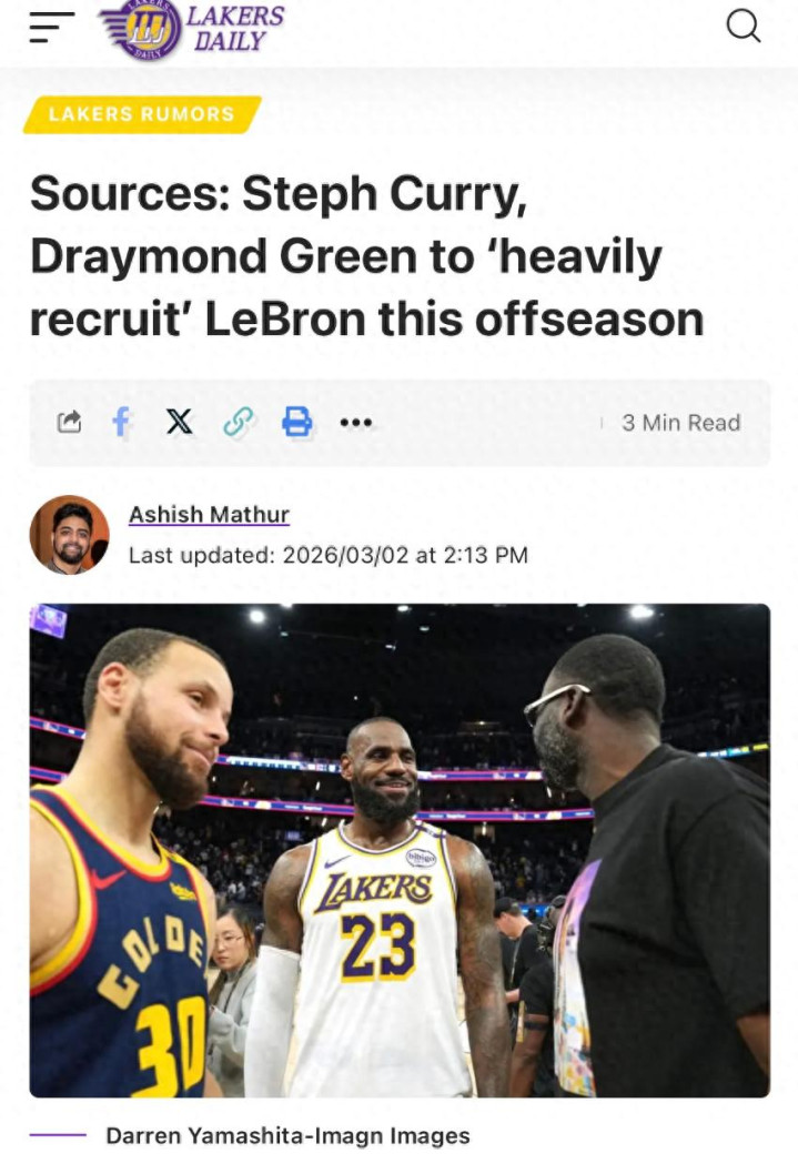 41岁,生涯首次完全自由身,历史得分王的下家悬念,终于要揭晓了。据NBA内部人士Ashish Mathur独家披露,詹姆斯将在今夏成为完全自由球员。而更劲爆的消息是——库里和追梦格林,计划全力招募詹姆斯。这意味着什么?詹姆斯可能穿上勇士球衣。历史得分王和历史三分王,要从宿敌变成队友。